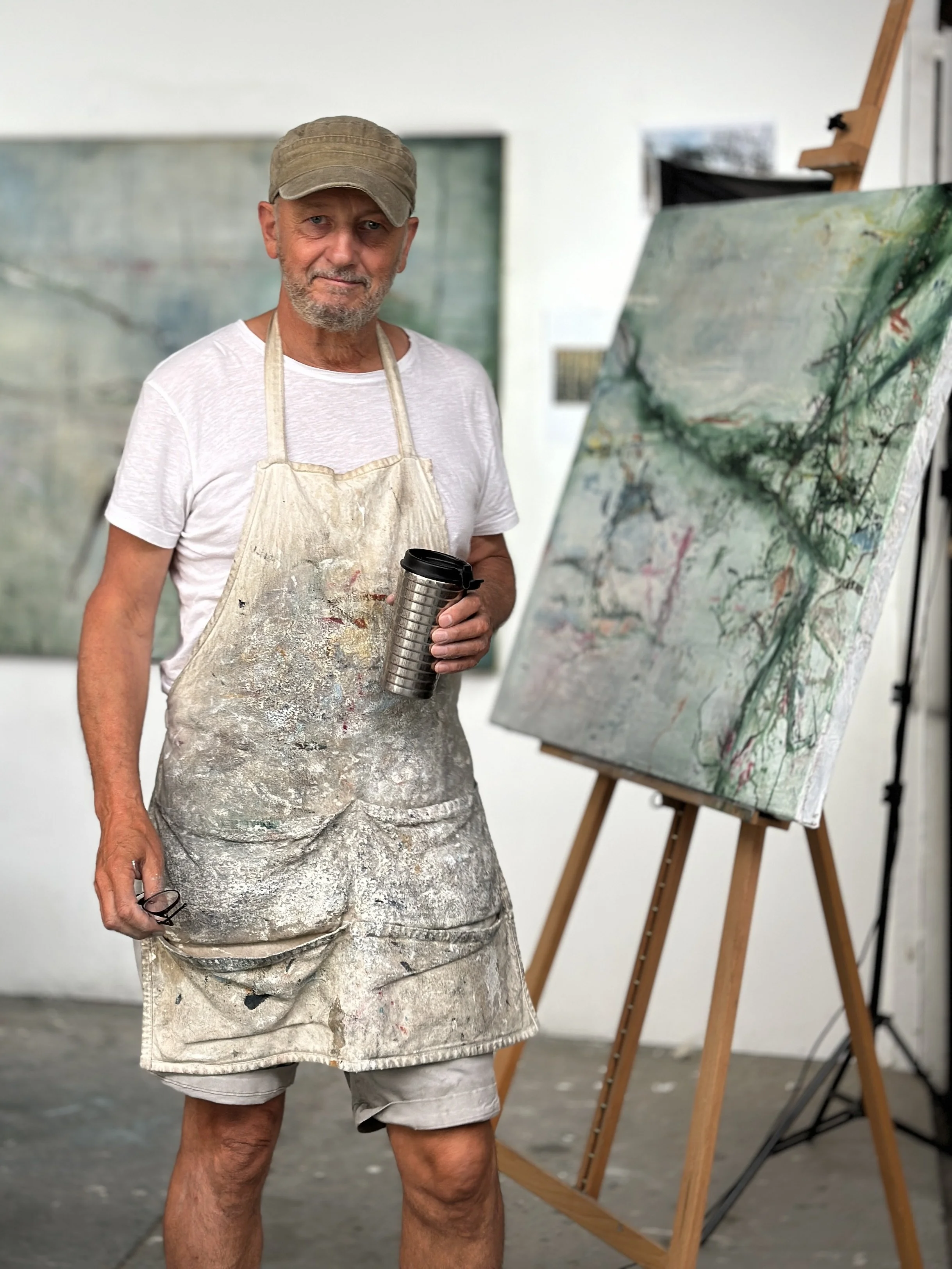 Through photography and painting, I work with fragments and traces allowing surfaces to build, recede and re-emerge. The photographs I make are starting points rather than references. In the studio, I paint from sensation and memory rather than from what is directly visible. Painting becomes a physical exchange with materials: layered pigments, textiles, shells or feathers are buried and uncovered until a surface begins to hold its own presence.